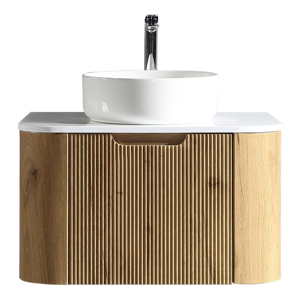 Elevate your bathroom with wall-hung oak vanity featuring a fluted front and soft-close drawer—ideal for small to mid-size bathrooms. Durable, moisture-resistant construction with a premium finish for everyday use.