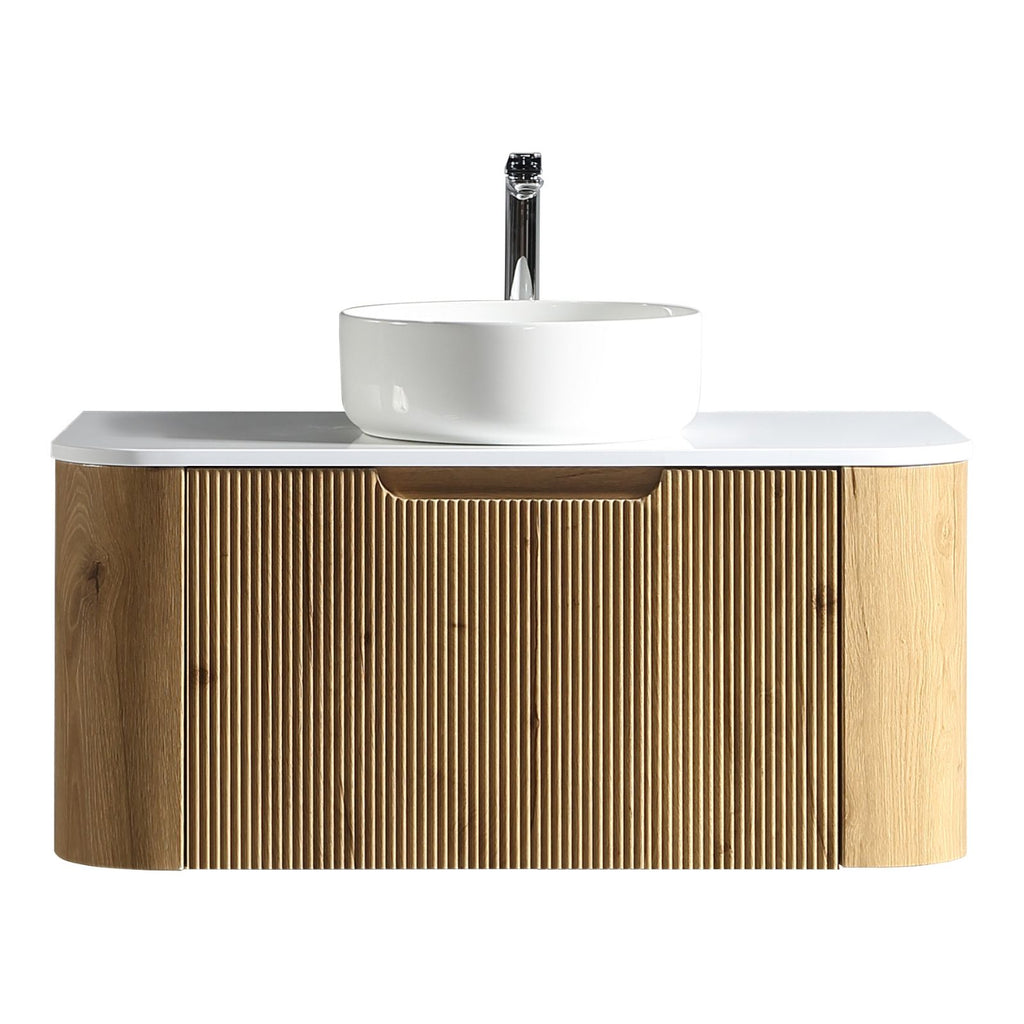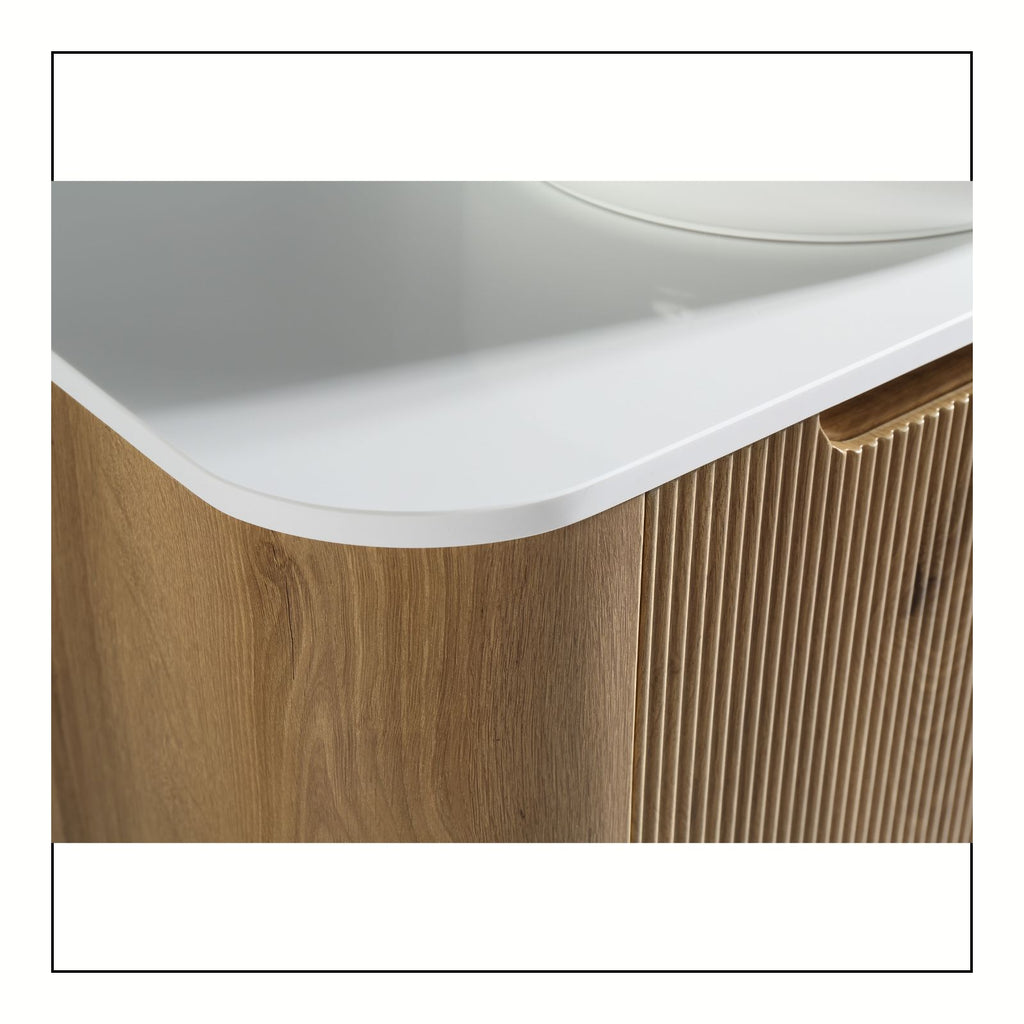 Elevate your bathroom with wall-hung oak vanity featuring a fluted front and soft-close drawer—perfect for family bathrooms that need extra bench space. Durable, moisture-resistant construction with a premium finish for everyday use.